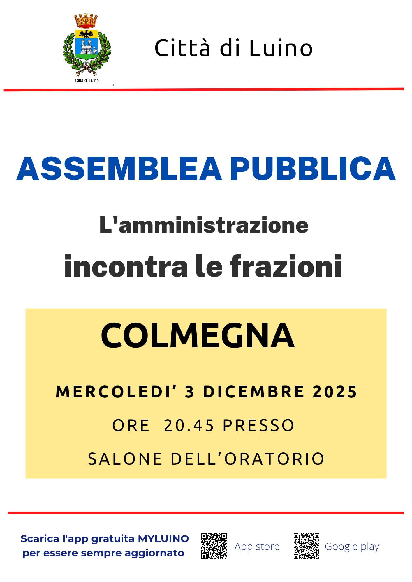 L'Amministrazione Comunale incontra i cittadini per parlare della frazione di Colmegna. Un momento di confronto e ascolto. Si invitano i cittadini alla massima partecipazione.